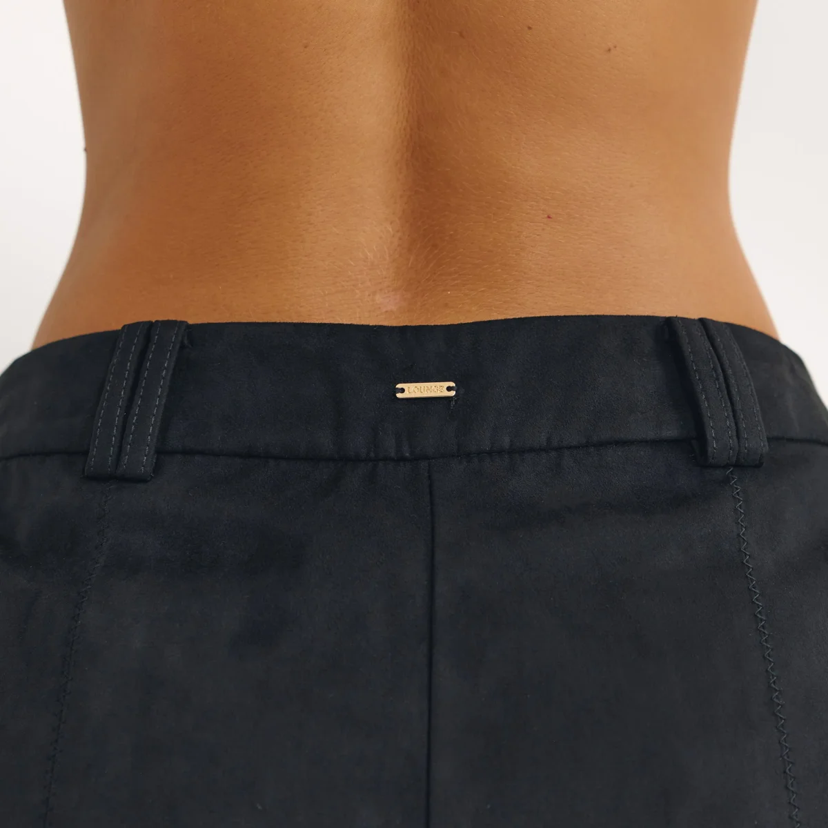 - Étiquette en métal doré griffée à l’arrière de la taille