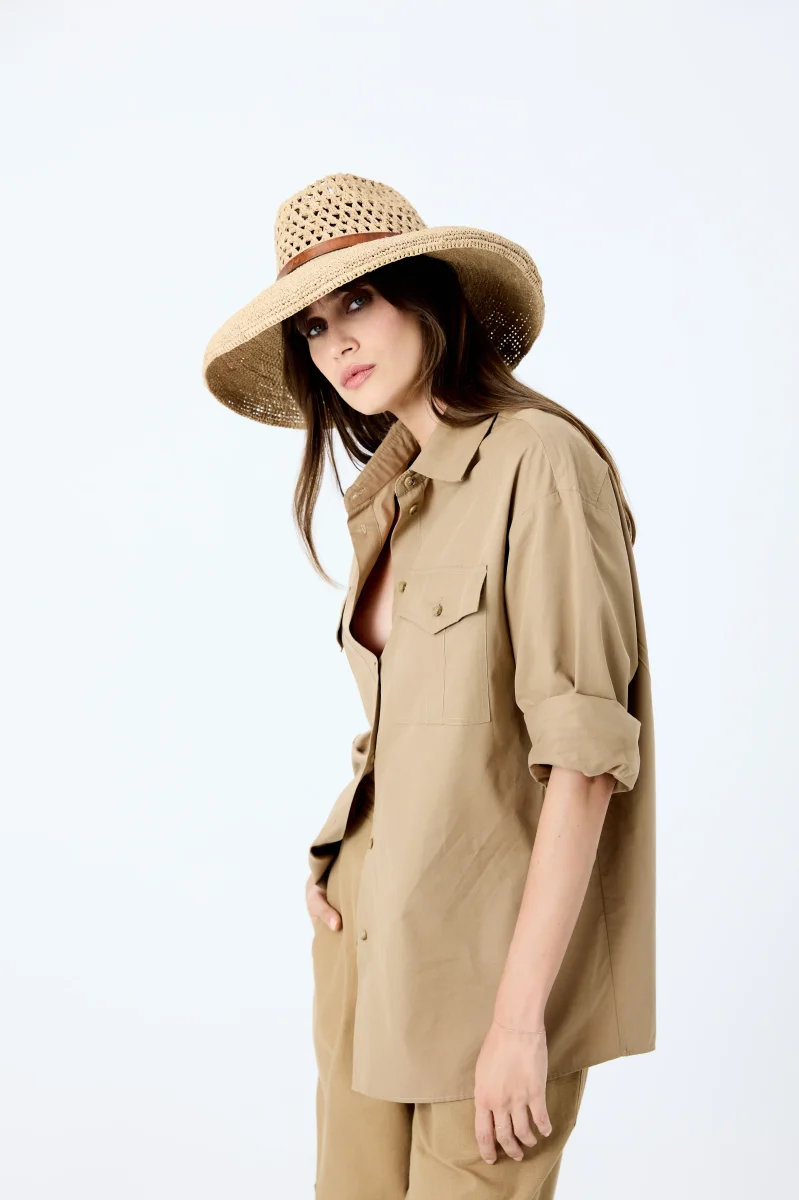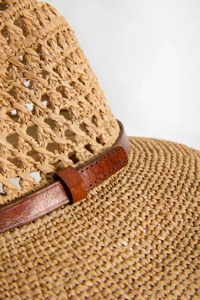 - Matières : 100% en Raphia naturel, doublé d’une bande en coton bio au niveau du tour de tête intérieur pour un confort optimal. Lanière en cuir de zébu tanné selon un procédé végétal.