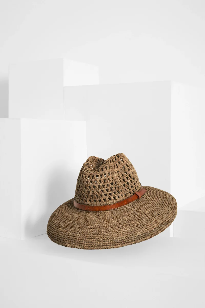 - Matières : 100% en Raphia naturel, doublé d’une bande en coton bio au niveau du tour de tête intérieur pour un confort optimal. Lanière en cuir de zébu tanné selon un procédé végétal.