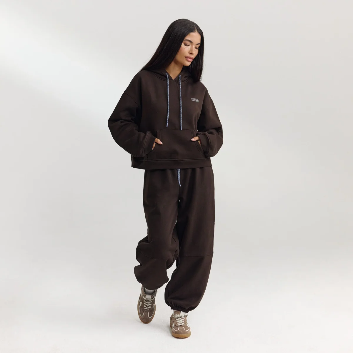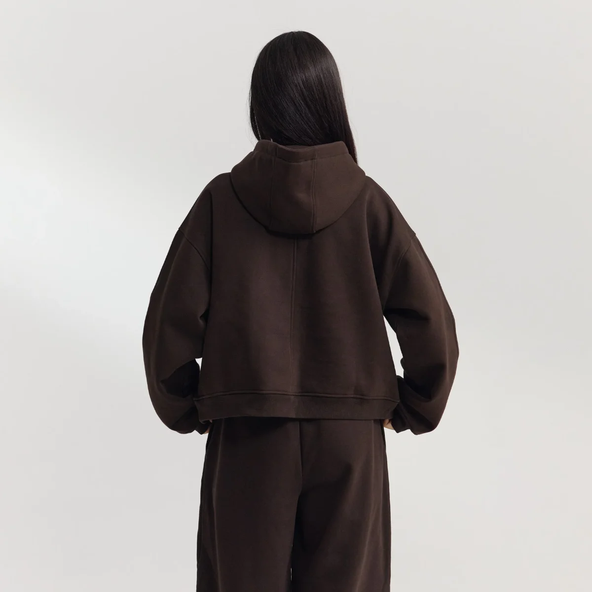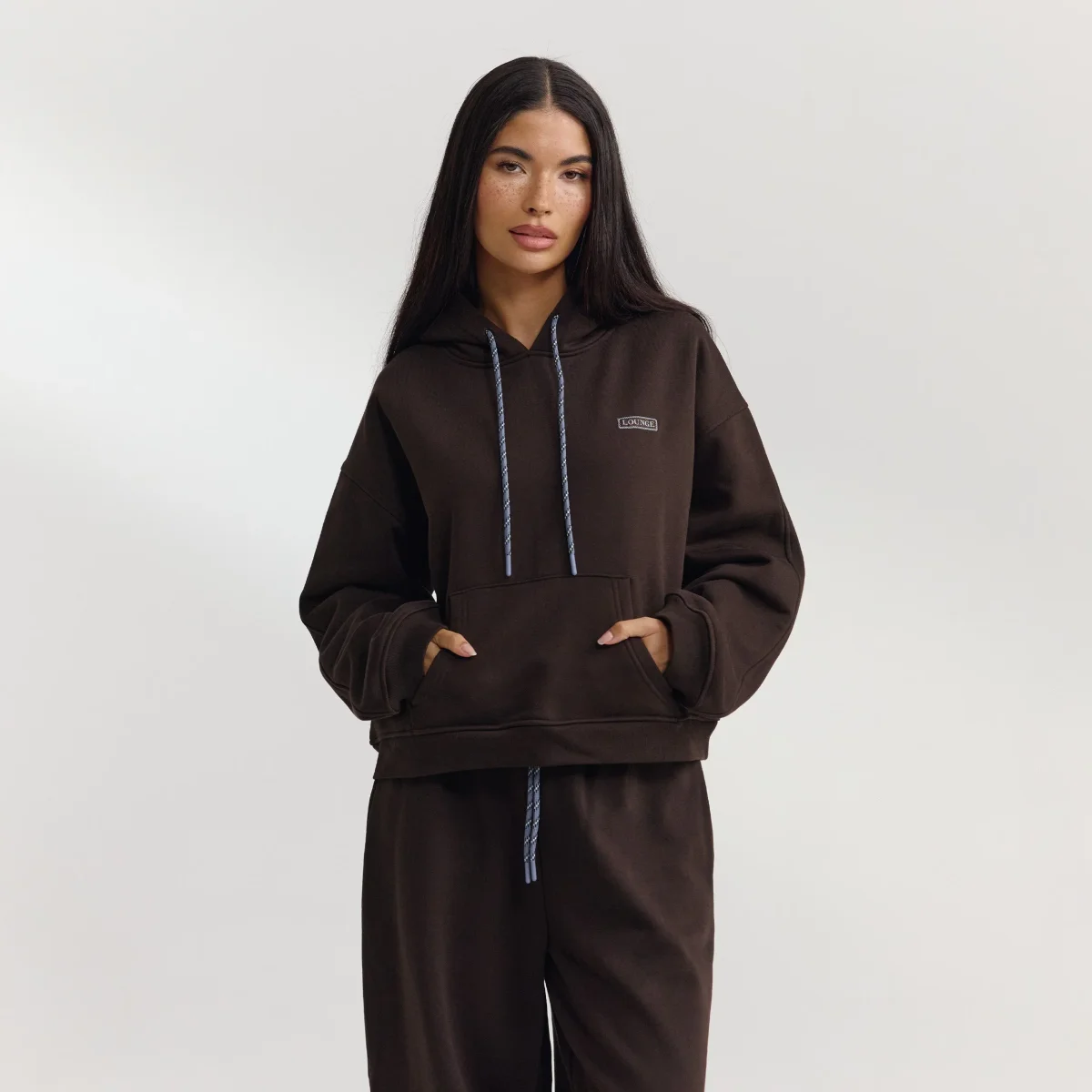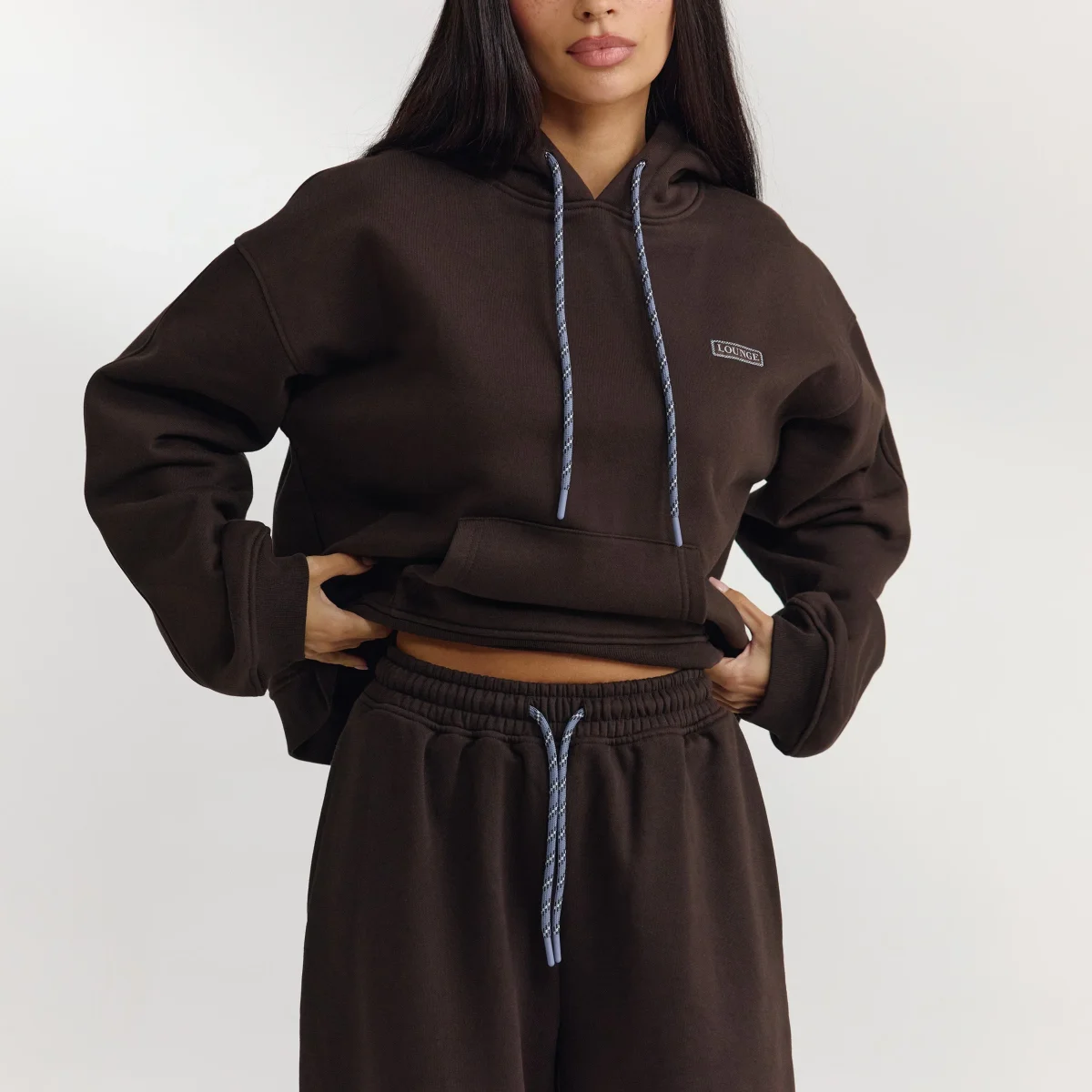 Tissu en éponge envers brossé Étiquette tissée bicolore sur la poitrine avec broderie en zigzag contrastante décorative Cordon tricolore avec embouts en silicone Poche kangourou à l’avant Surpiqûres décoratives aux manches Capuche en trois parties pour une meilleure tenue et structure Couture centrale au dos, finie par des surpiqûres