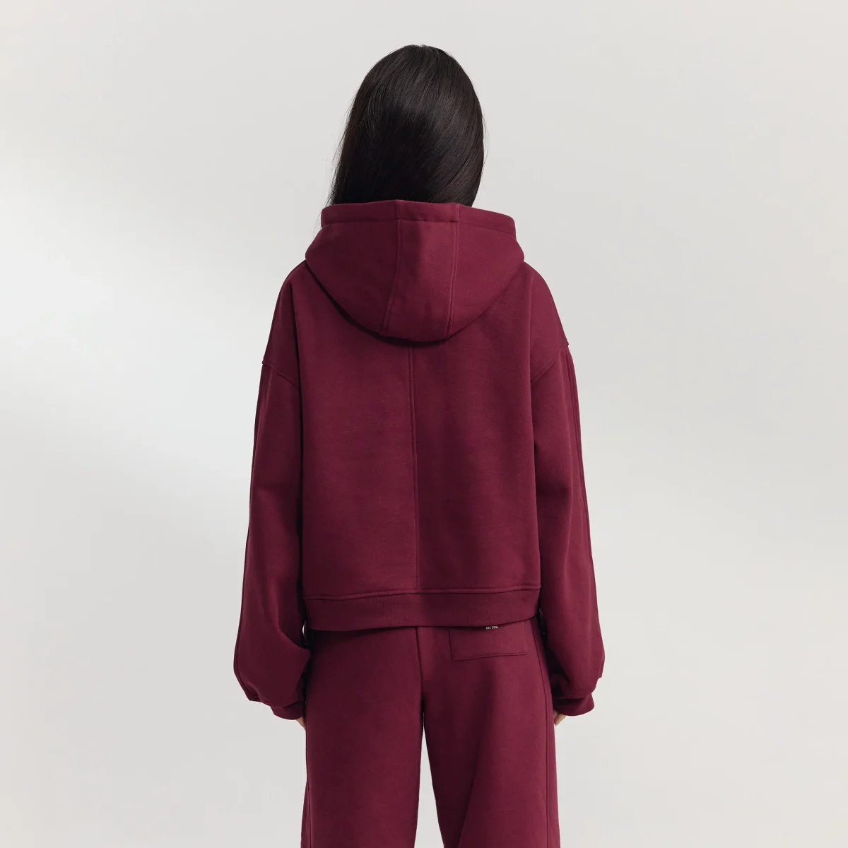 Tissu en éponge envers brossé Logo imprimé et brodé sur la poitrine Cordon tricolore avec embouts en silicone Poche kangourou à l’avant Surpiqûres décoratives aux manches Capuche en trois parties pour une meilleure tenue et structure Couture centrale au dos, finie par des surpiqûres