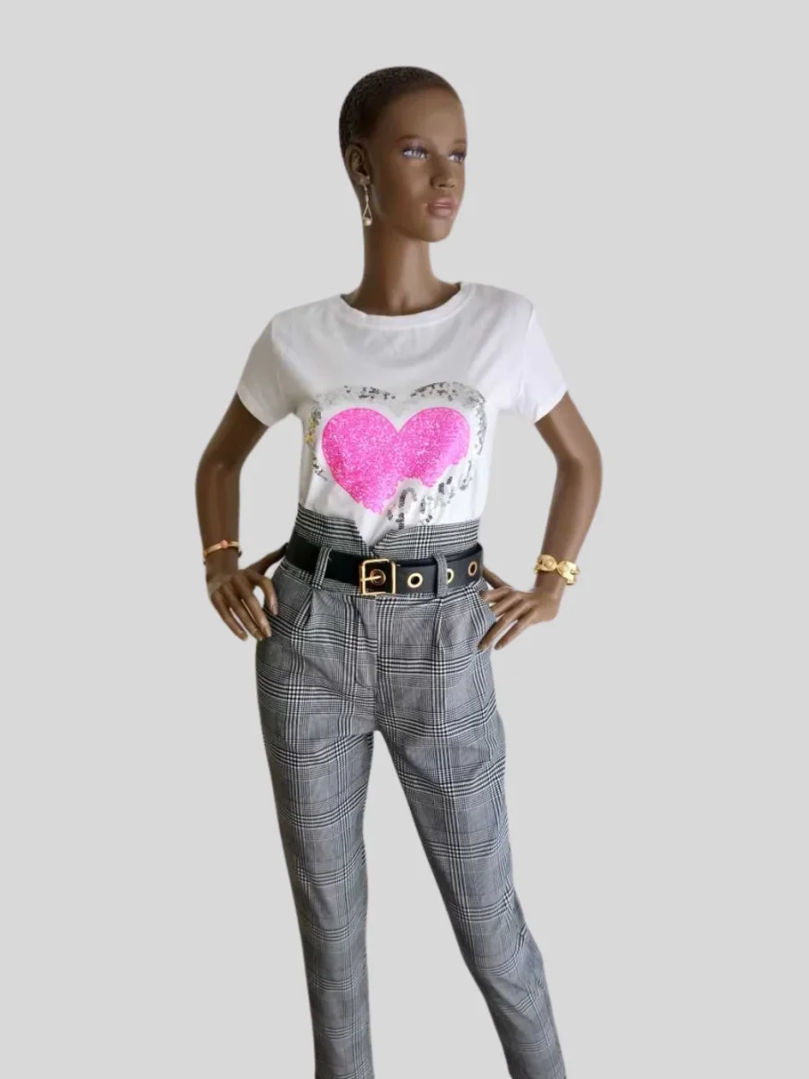 MUST HAVE du dressing. Le T-shirt blanc, un classique indémodable parfait pour créer tout type de style vestimentaire. Idéal à associer avec un pantalon, un Jean ou une veste. Description T-shirt en coton à paillettes. Imprimé avec cœur de couleur rose. Col rond. Manches courtes. Coloris : blanc/rose Longueur : environ 60 cm. Made in […]