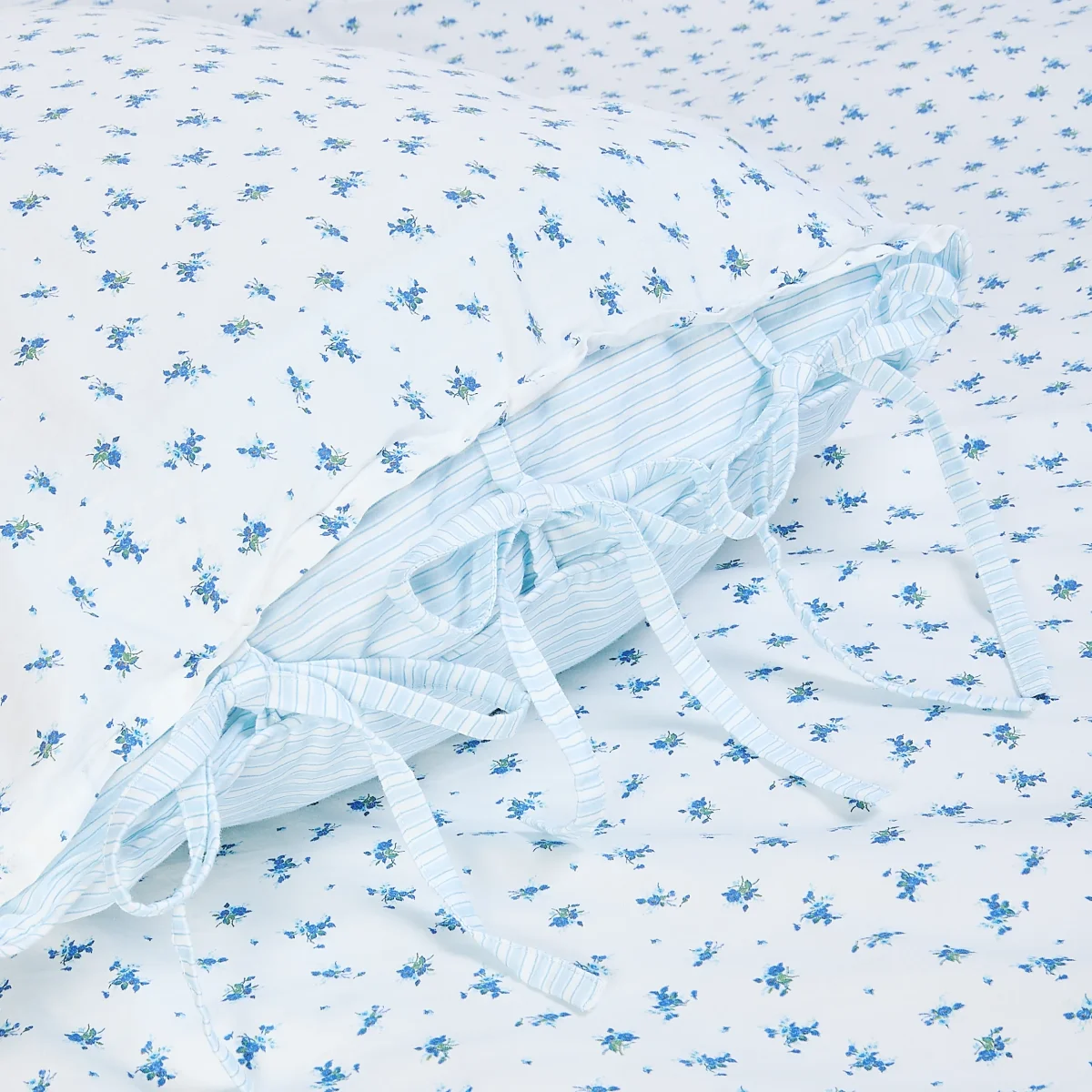 Taies d’Oreiller Réversibles Bloom & Stripe (Pack de 2) – Bleu Floral