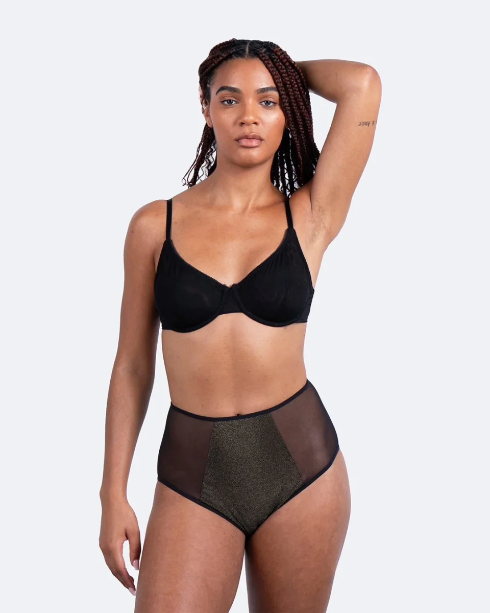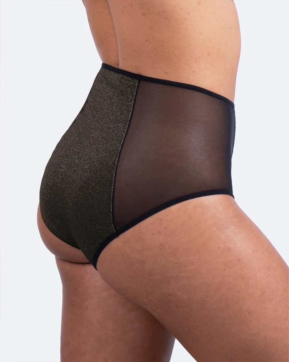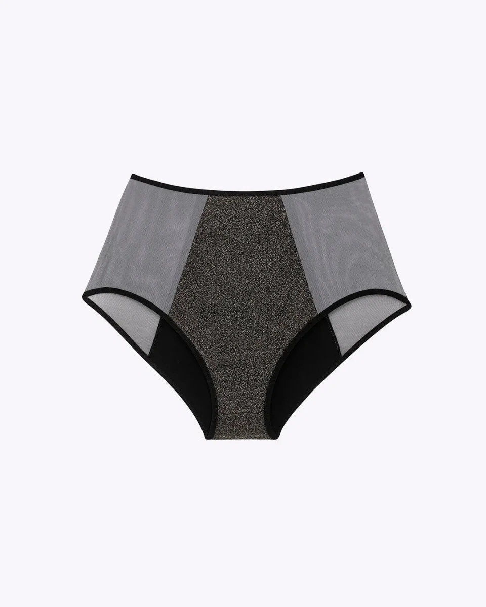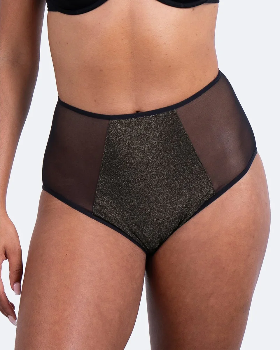 Conçue pour t’accompagner pendant les jours de flux abondant, la culotte Iconic absorbe l’équivalent de 3 à 4 protections menstruelles classiques (tampons ou serviettes). Sa matière pailletée et son tissu absorbant ultra-fin de moins de 4 mm garantissent une protection discrète et efficace, de jour comme de nuit.