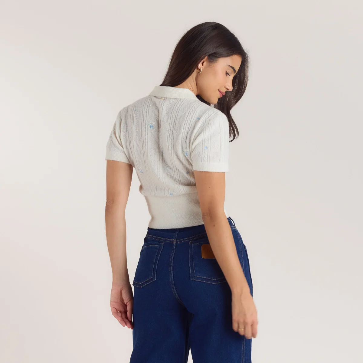 « Homegrown » est une ode à la vie dans la campagne britannique. Capturant la beauté silencieuse du premier changement de saison, Homegrown incarne une allure naturelle et délicieusement rafraîchissante. Ce top doux et cintré, orné de mini fleurs brodées, capture l’essence du printemps dans votre garde-robe.