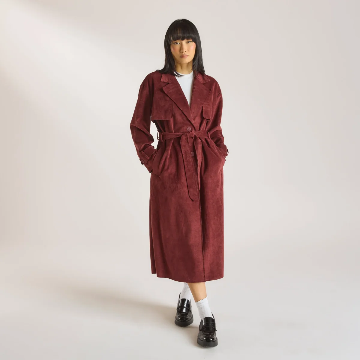 - Trench long en suédine