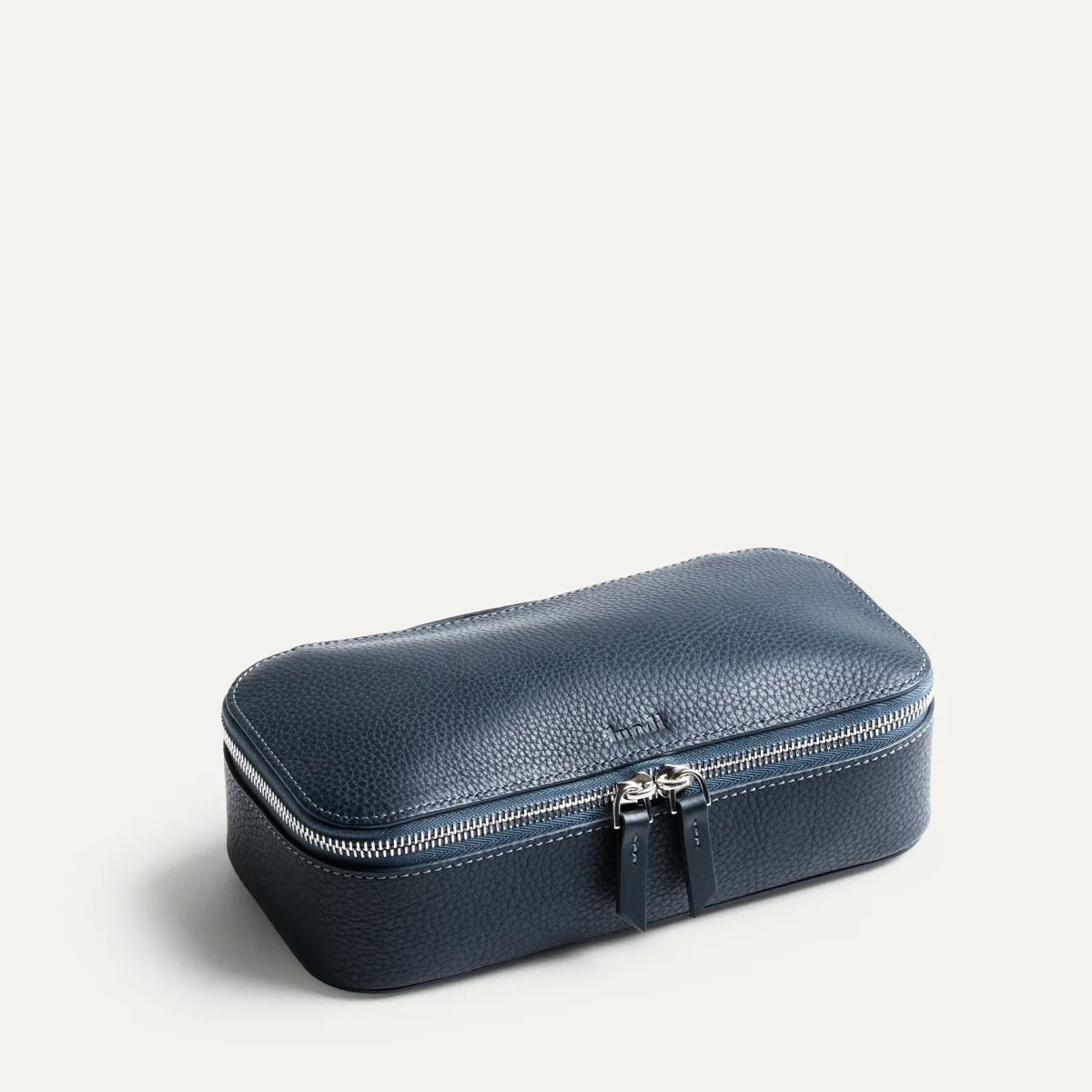 Grâce à son format compact, la LISA marine s’intègre aisément dans les sacs de voyage lundi. La fermeture double curseur métallique assure une manipulation confortable.