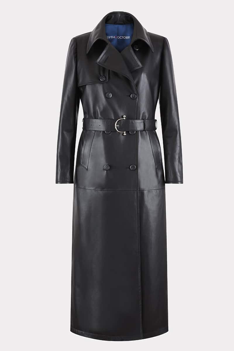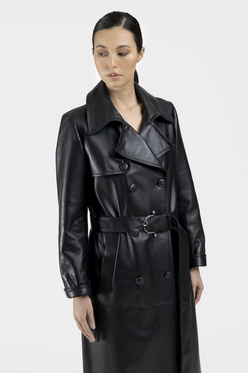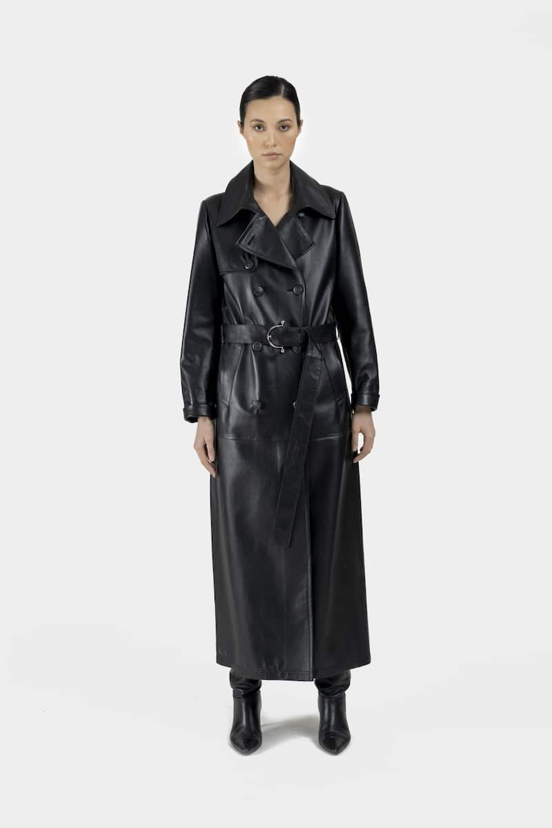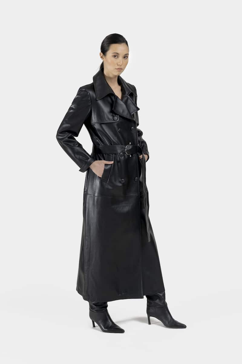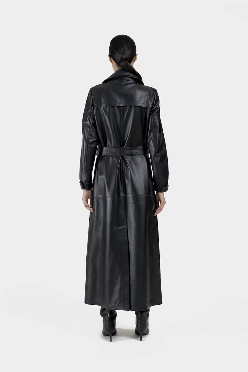 Long trench tendance en cuir d’agneau plongé noir