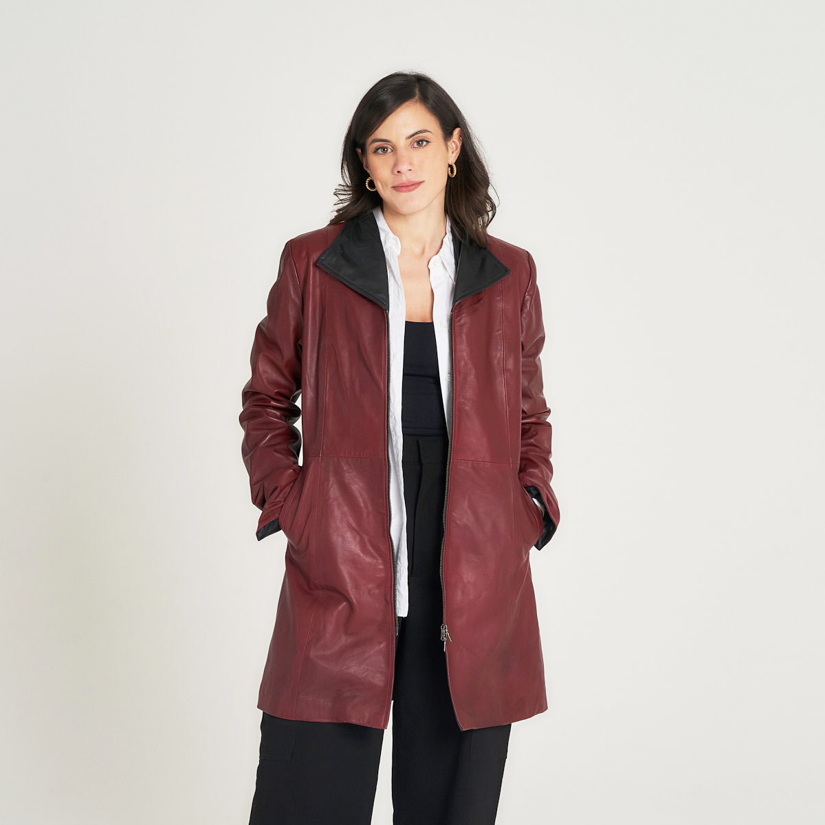 Veste en cuir bordeaux, caractère affirmé et charme intemporel