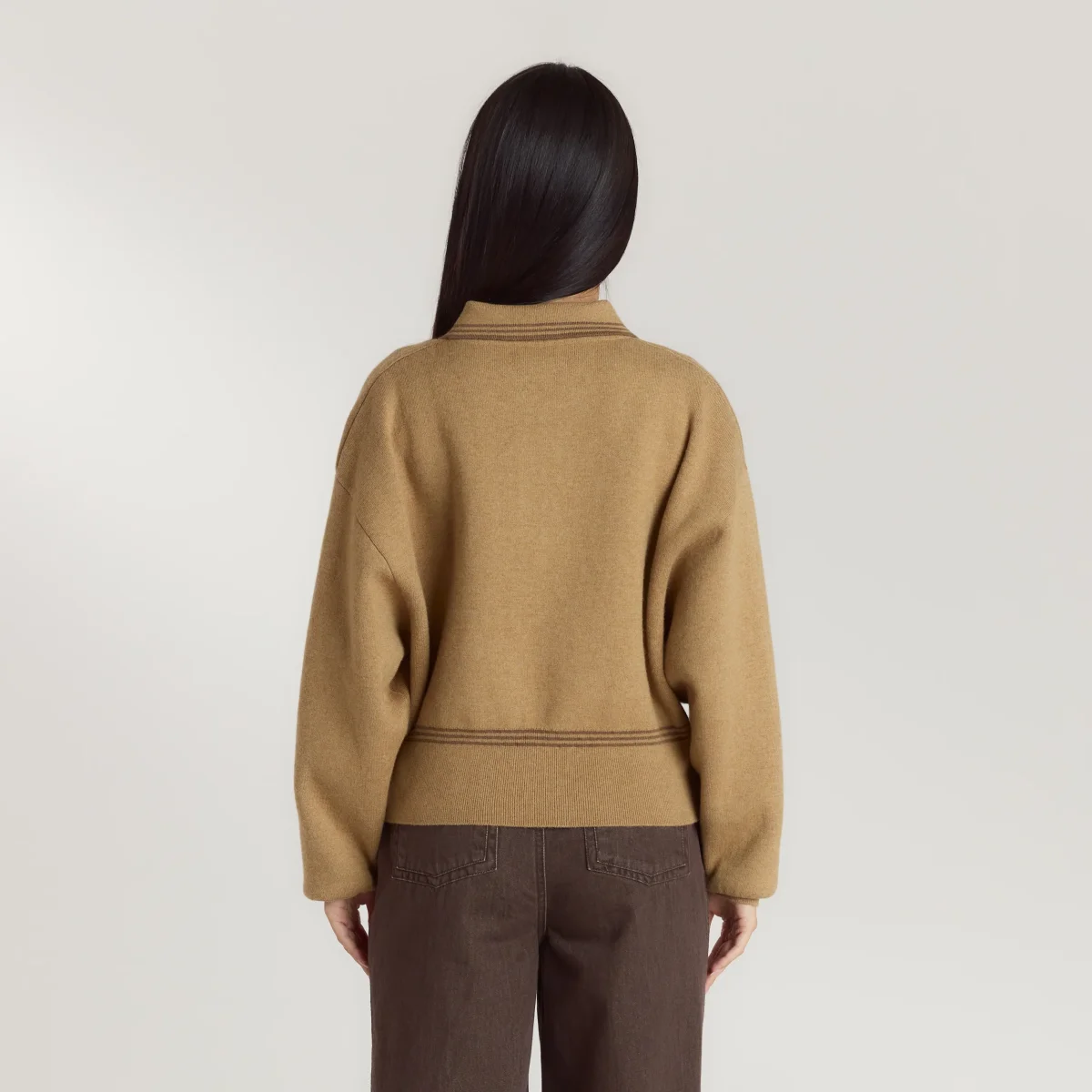 - Large ourlet côtelé avec détail à trois bandes