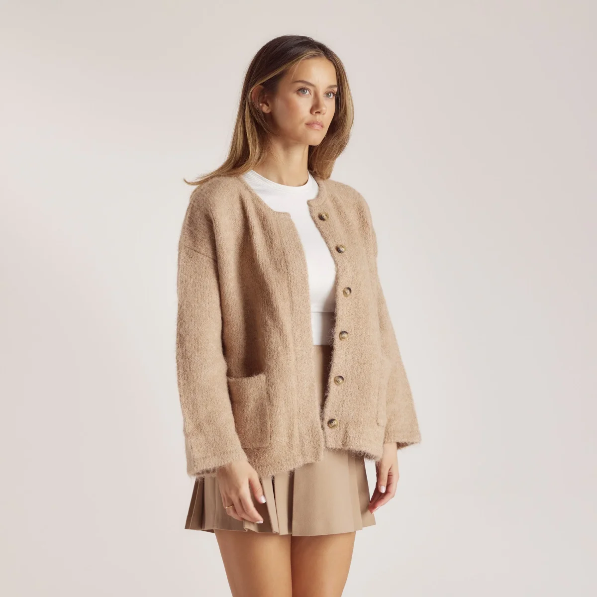 Veste en Mélange d’Alpaga – Brun clair